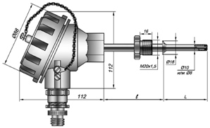 Terminal heads can be equipped with transmitters with 4-20 mА DC output signal and/or digital signal via HART, PROFIBUS-PA, FOUNDATION Fieldbus protocol. It is recommended to use heads of 16, 23, 28 modifications for easy wire connection to transmitters. Terminal head can be equipped with standard or special-purpose cable gland. For further details see "Alternative designs & Ordering information" below.