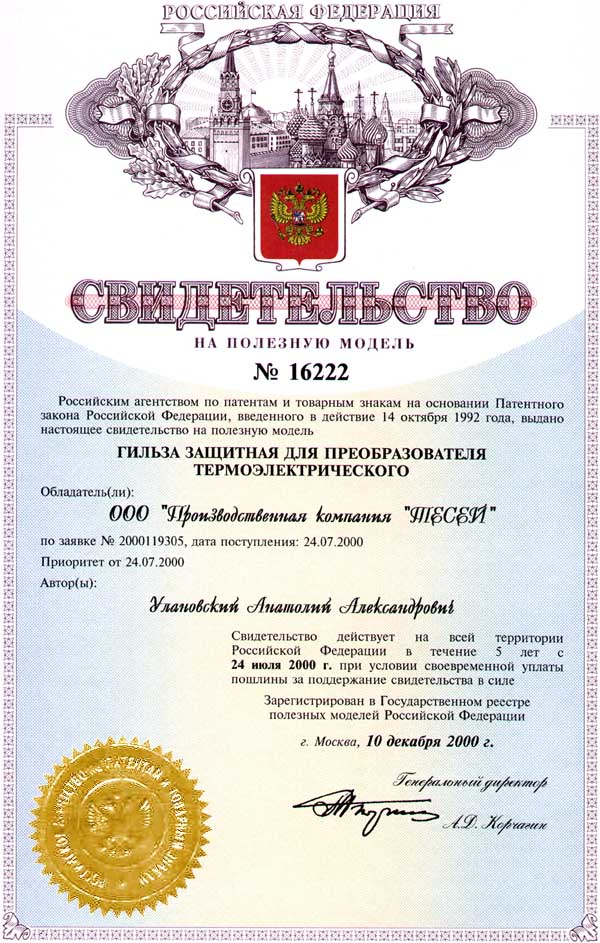 на полезную модель “Гильза защитная для преобразователя термоэлектрического” (ЮНКЖ 019, ЮНКЖ 020)